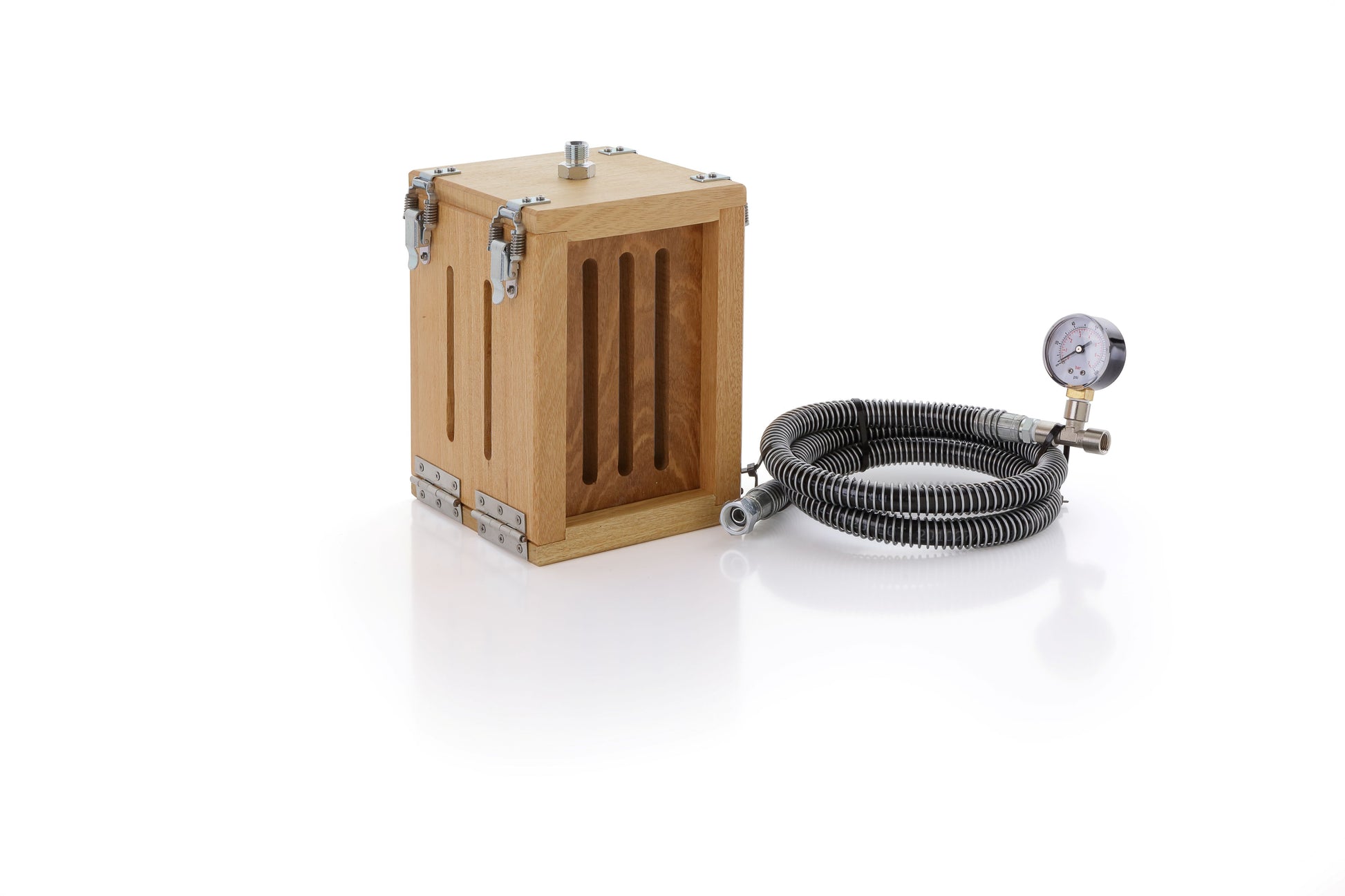 Ideal for on-demand use, the dry ice maker connects directly to a liquid CO₂ cylinder with an internal siphon. It's portable, easy to operate, and eliminates the need for dry ice storage or external supply.